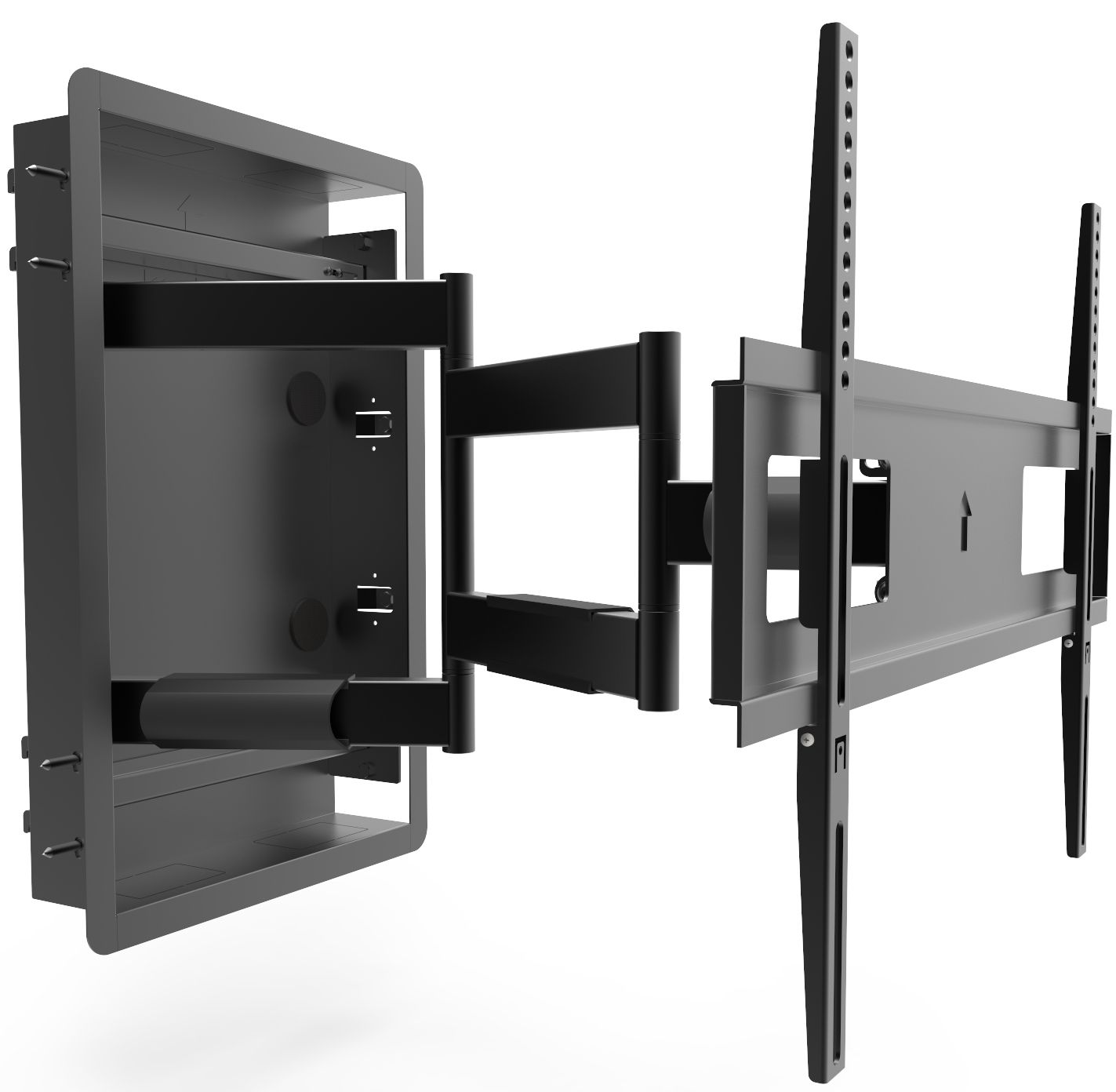 The R500’s in-wall design is made to fit securely between 16” stud centers. When fully retracted, its arm assembly allows your TV to sit almost flush with the wall.