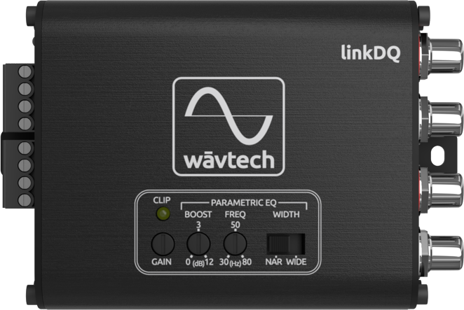The linkDQ has the same class leading LOC and line driver that are the core DNA of all Wāvtech products. The linkDQ features an adjustable parametric EQ with narrow or wide range selection, allowing corrections to any low frequency deficiency that may be present in a factory audio system. It features auto turn-on via DC-offset or Audio Signal Detect, either of which can be easily defeated by the convenient jumpers on the end panel.